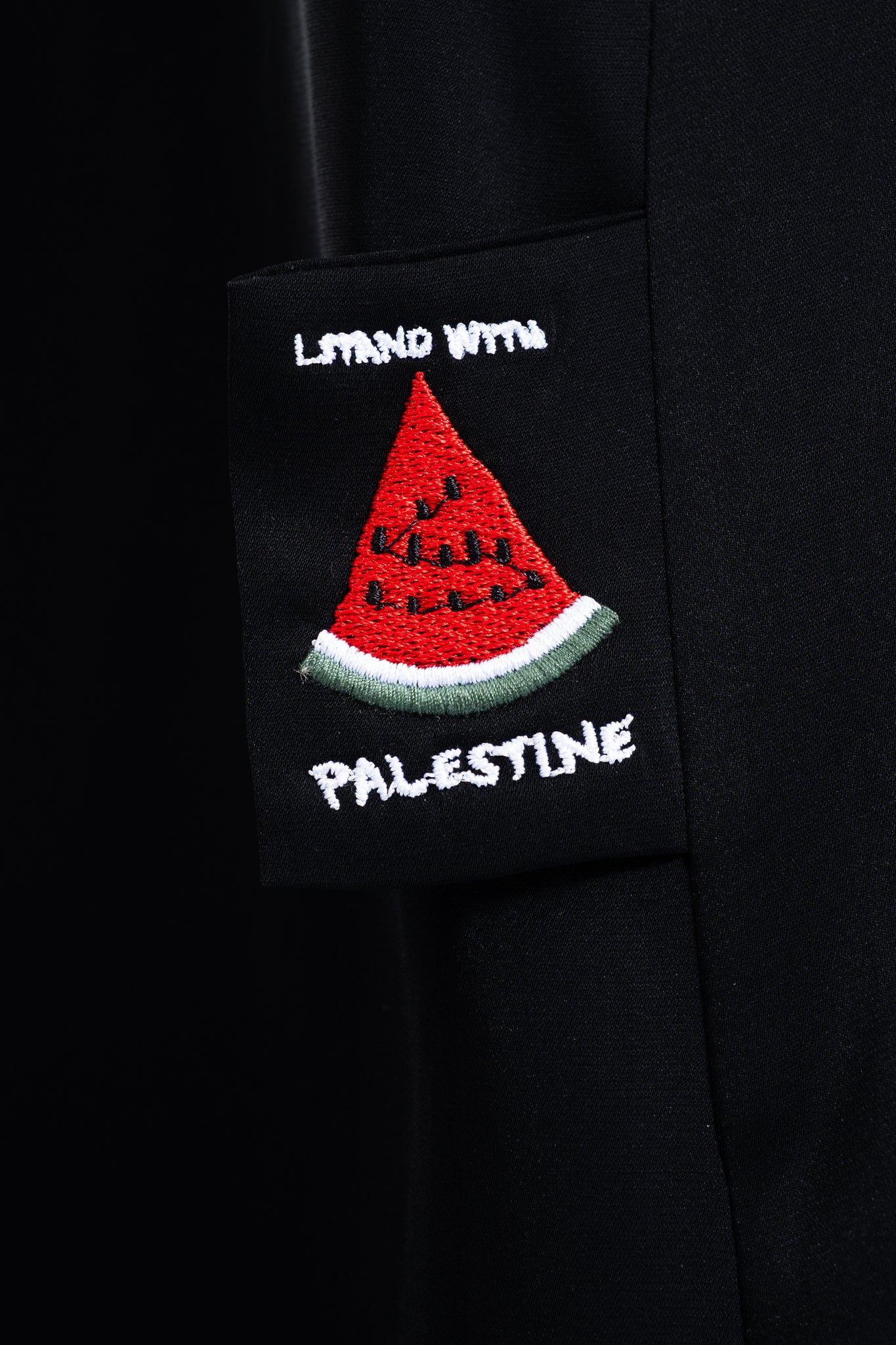 - Détail signature : l'étiquette pastèque ‘’ I STAND WITH PALESTINE ‘’